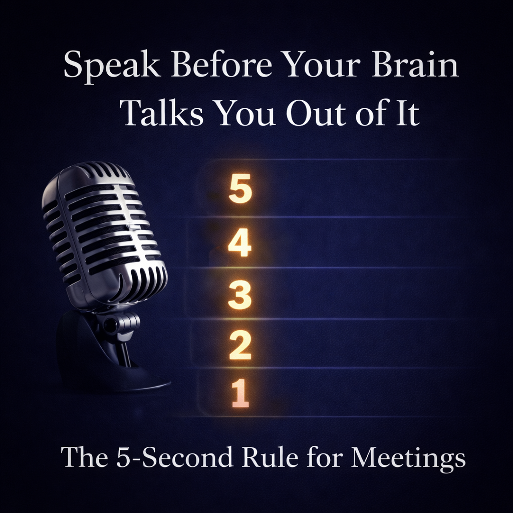Hesitation in meetings is usually a nervous system response, not a language problem. The hesitation window, that gap between the impulse to speak and the decision to act, grows harder to leave the longer you stay in it. The 5-second rule interrupts the rumination cycle before anxiety can take hold. Bridge phrases lower the cost of the first word. Confidence follows action; it doesn't precede it. Starting is the only metric that matters right now.